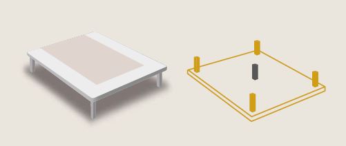 • Un tablero de aglomerado prensado que proporciona un soporte firme para cualquier colchón.