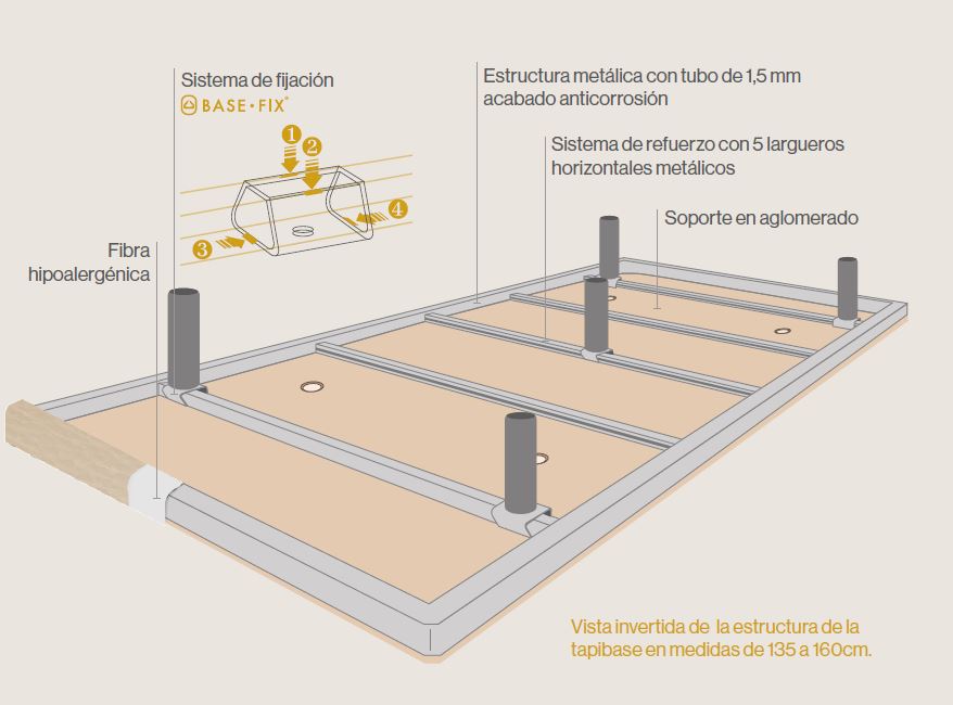 Es un soporte ideal para todo tipo de colchones, especialmente muelles ensacados.