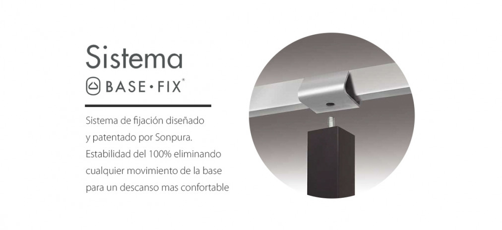 Incluye el sistema de fijación patentado por Sonpura Base Fix®, con 4 puntos de refuerzo que eliminan cualquier movimiento de la base.