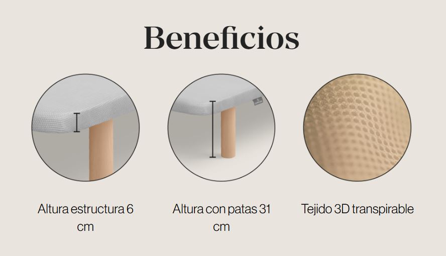 Es una base ideal para todo tipo de colchones, incluidos los de espumación o látex, que requieren una ventilación superior.
