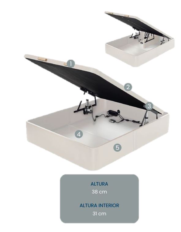 Apertura eléctrica motorizada: accede al interior del canapé sin esfuerzo gracias a su innovador sistema de apertura automatizada con mando inalámbrico.