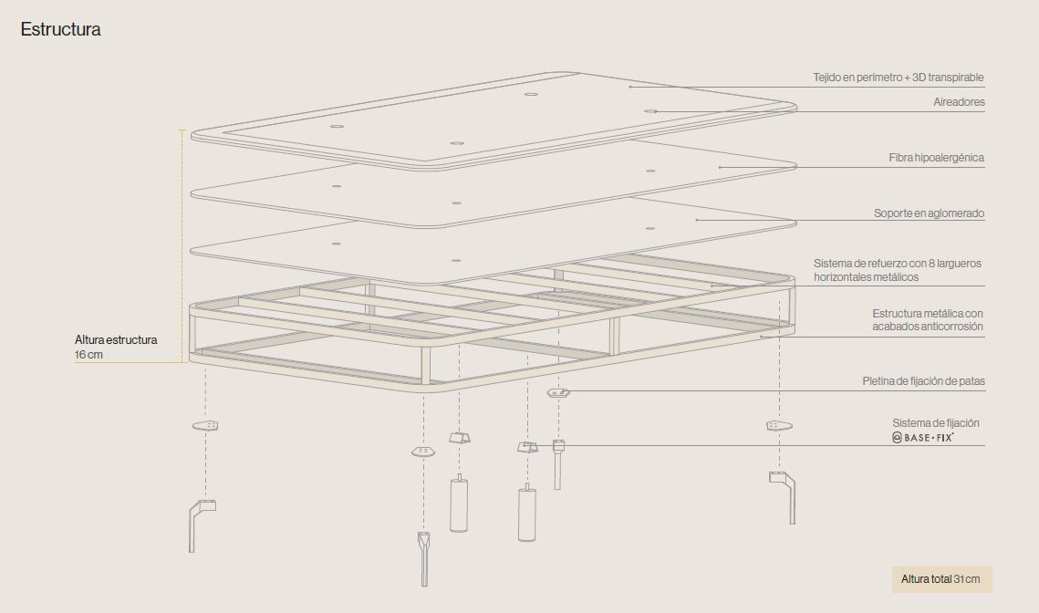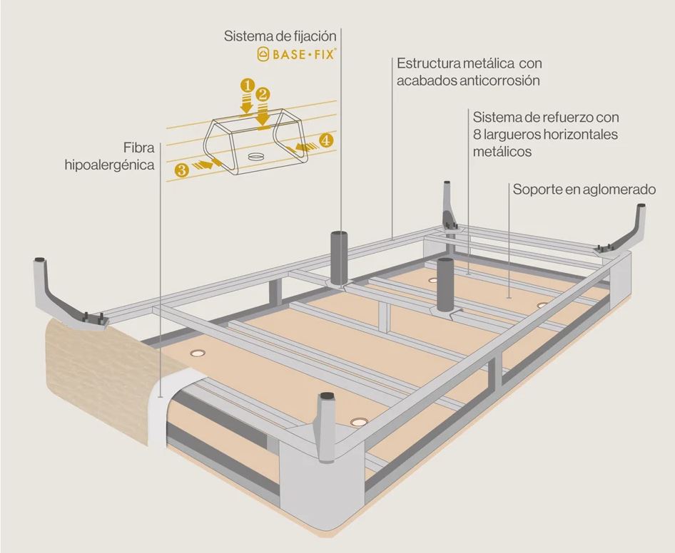 Es una base ideal para todo tipo de colchones, incluidos los de espumación o látex, que requieren una ventilación superior.