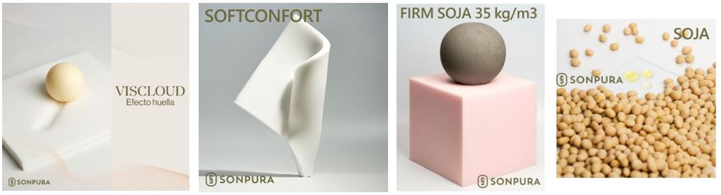 Espumación técnica exclusiva de Sonpura, elaborada con aceite natural de soja, que aporta firmeza estructural, resistencia y transpirabilidad. Junto con la viscoelástica, crea un tándem perfecto entre soporte firme y suavidad flexible.