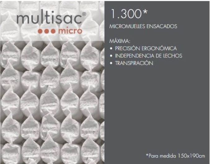 • Adaptabilidad total: sus 1.300 micromuelles Multisac® Micro se ajustan punto por punto al contorno del cuerpo, ofreciendo soporte individualizado.