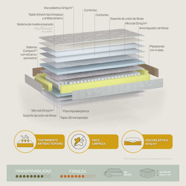 Tecnología Multisac® System— Tecnología de muelles ensacados para un descanso preciso y duradero