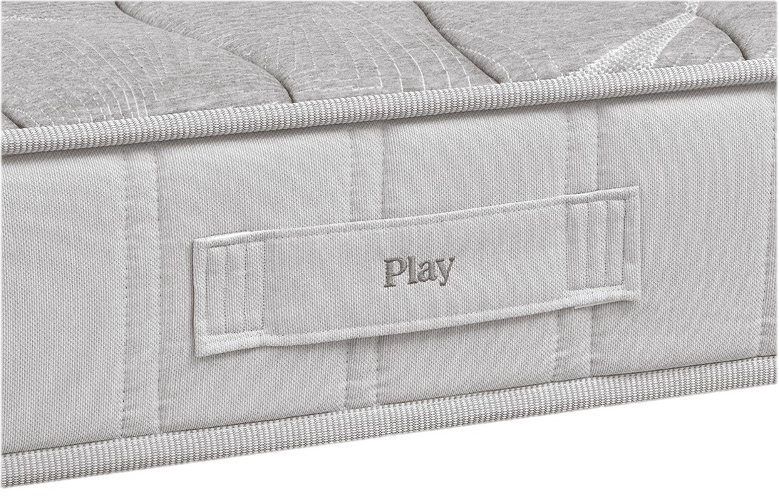 El Play cuenta con 300 muelles ensacados independientes (en la medida 90×190 y 500 en medida de 150×190), capaces de adaptarse punto por punto a cada zona del cuerpo para ofrecer un apoyo firme, progresivo y saludable. Su firmeza 7/10 protege la espalda en pleno desarrollo y mejora la circulación sanguínea gracias a sus capas de espumas exclusivas La gran versatilidad del Play: mucho más que un colchón infantil
